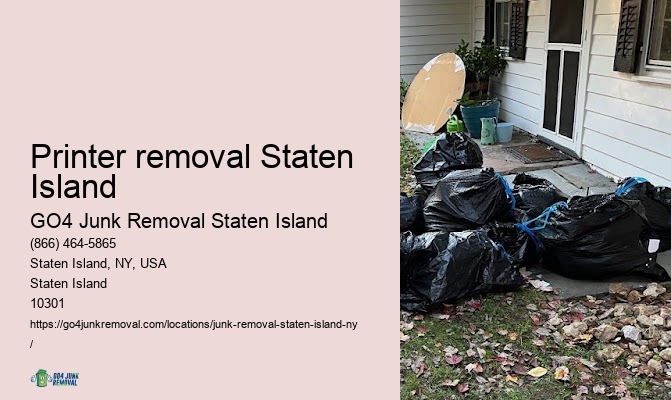 Instead, materials like plastic, metal, and fiberglass can find new life in recycled products, reducing waste and conserving resources. It's that easy. To ensure a smooth and efficient yard debris pickup, it's crucial you gather and sort your waste before the GO4 Junk Removal Printer removal Staten Island team arrives. Why take our word for it when you can hear directly from satisfied customers who've experienced GO4 Junk Removal Printer removal Staten Island's exceptional service firsthand? This approach minimizes the risk of damage to your property and ensures the safety of everyone involved.